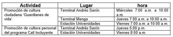 A diario estos grupos en estaciones y terminales, a través de pedagogía sobre los comportamientos adecuados al viajar en el MIO, la importancia de pagar el pasaje y el cuidado y la apropiación hacia los bienes públicos, motivan a los usuarios a mantener una relación armónica con las demás personas que utilizan el transporte público.