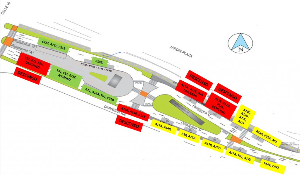En cuanto a las paradas de ascenso de las rutas T31, E21 y E21C, estas se trasladarán hacia la plataforma A1, tal cual como se encontraban antes de los daños ocasionados a la infraestructura de la estación Universidades.