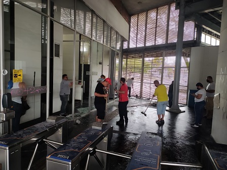 Bajo el lema ‘Cali se levanta por la vida’, durante el día cívico declarado por el alcalde, Jorge Iván Ospina Gómez, concesionarios del masivo, diferentes dependencias de la Administración Distrital, empresa privada y personal de Metro Cali, todos unidos por recuperar el Sistema MIO, salieron esta mañana a limpiar, recoger escombros, residuos y valorar los daños en las estaciones objeto de vandalismo. La meta es volver a prestar, cuanto antes, el servicio de transporte.